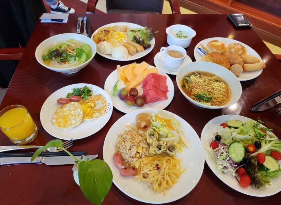 1층 레스토랑에서 조식, 석식을 드시게 됩니다. 다양한 메뉴가 있는 뷔페식으로 드시게 됩니다. 호텔에는 한국손님 입맛에 맞게 식단을 짜는 매니저가 있어서 향이 강하지 않고 맛있게 드실 수 있습니다.